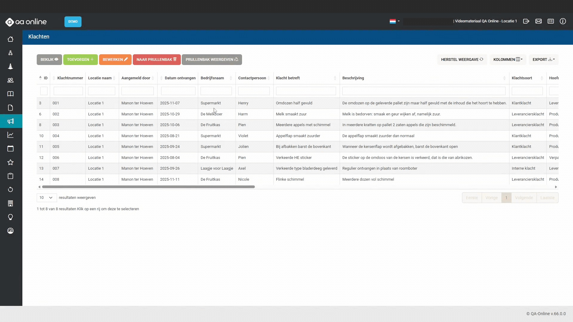 Een duidelijk klachtenoverzicht voor eenvoudige opvolging en afhandeling van klachten. Het overzicht toont de exacte status van elke klacht en verbeteracties om klachten in de toekomst te voorkomen.
